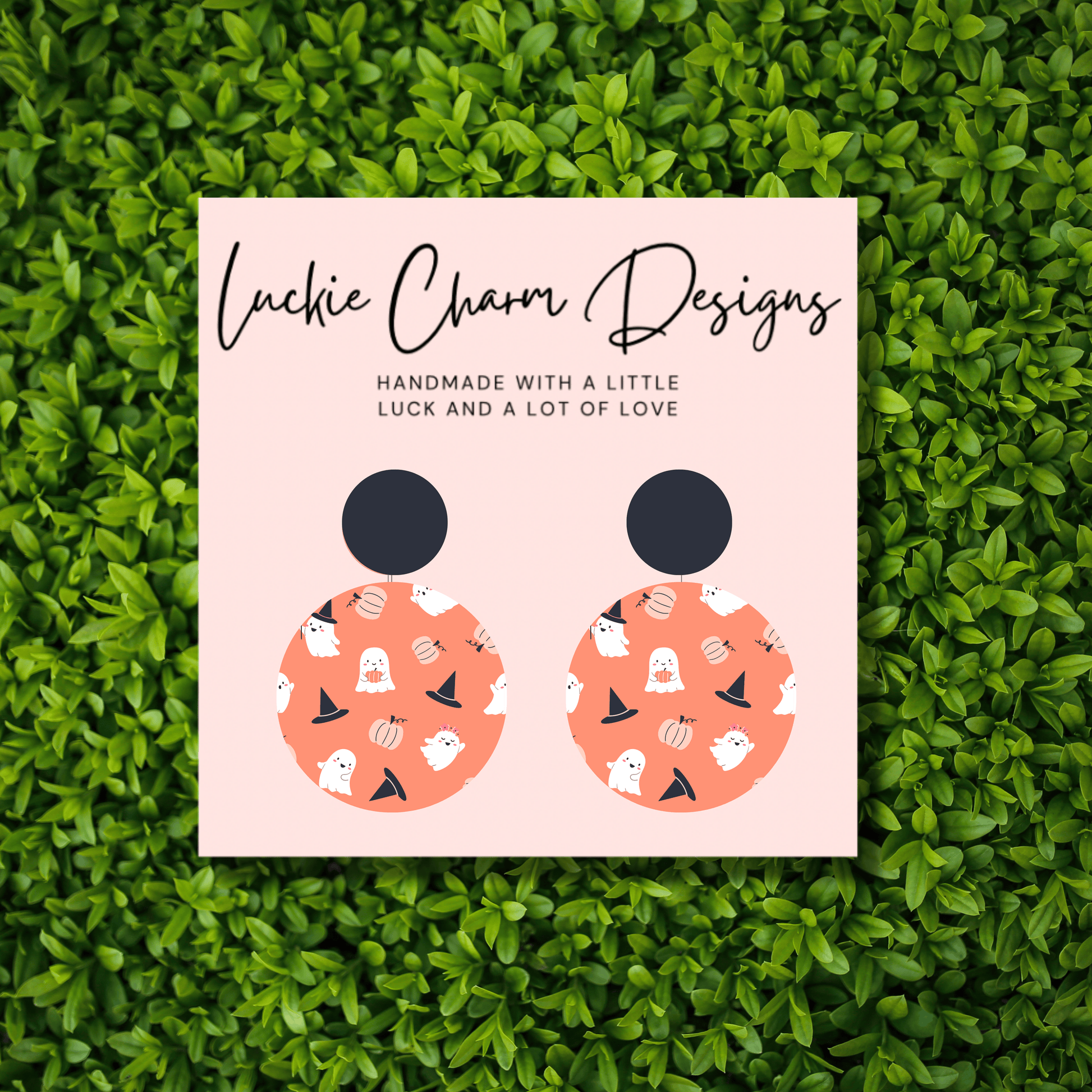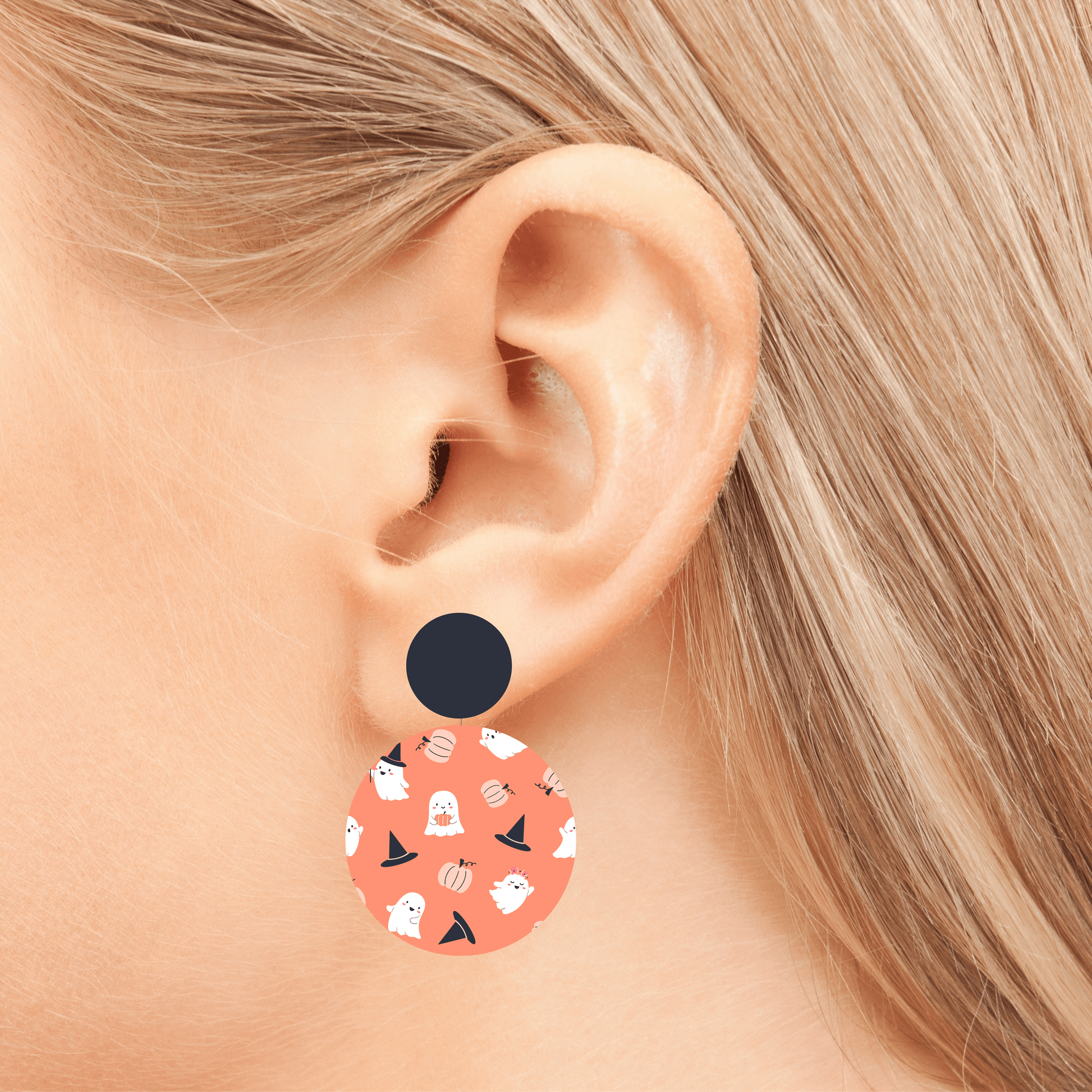 Add a touch of cute, spooky, and festive charm to your look with these Halloween Vibes earrings! Featuring pumpkins, ghosts, and witches hats in orange, cream, and navy, they’re perfect for Halloween. Lightweight and handmade, these earrings bring the perfect mix of playful and bold to your outfit.